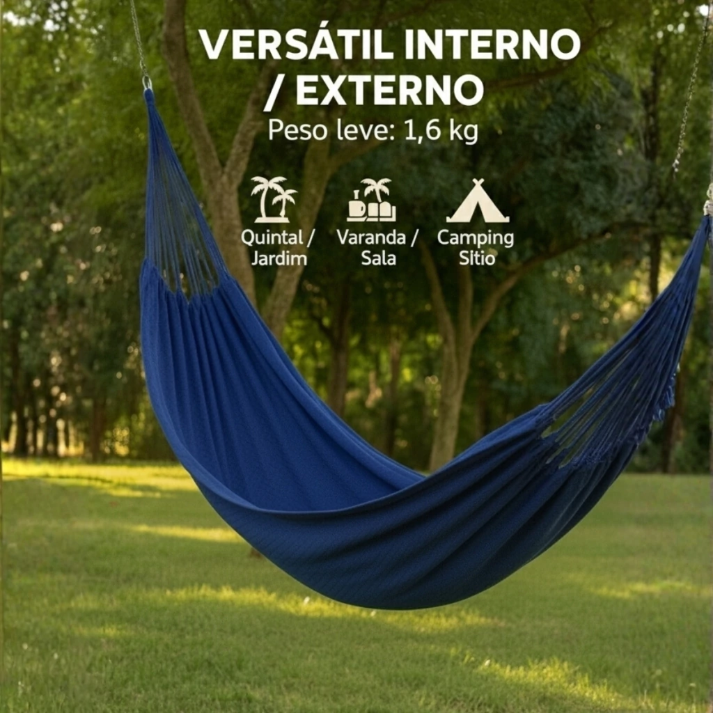 Versátil (interno/externo): perfeita como rede de descanso, rede de dormir ou ponto de relax no camping.